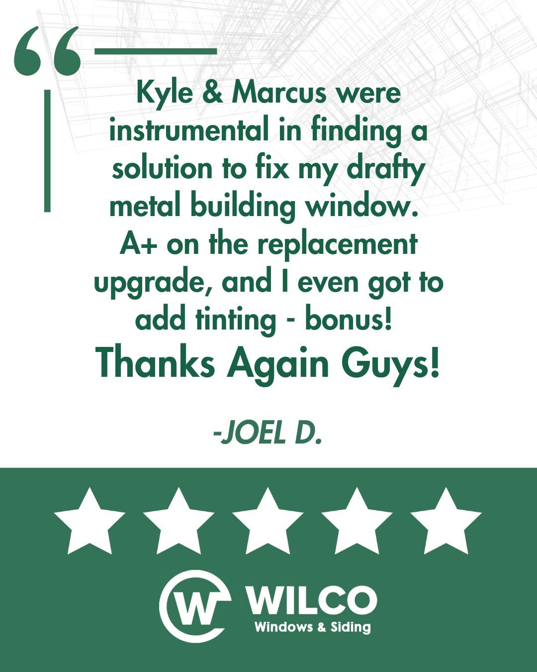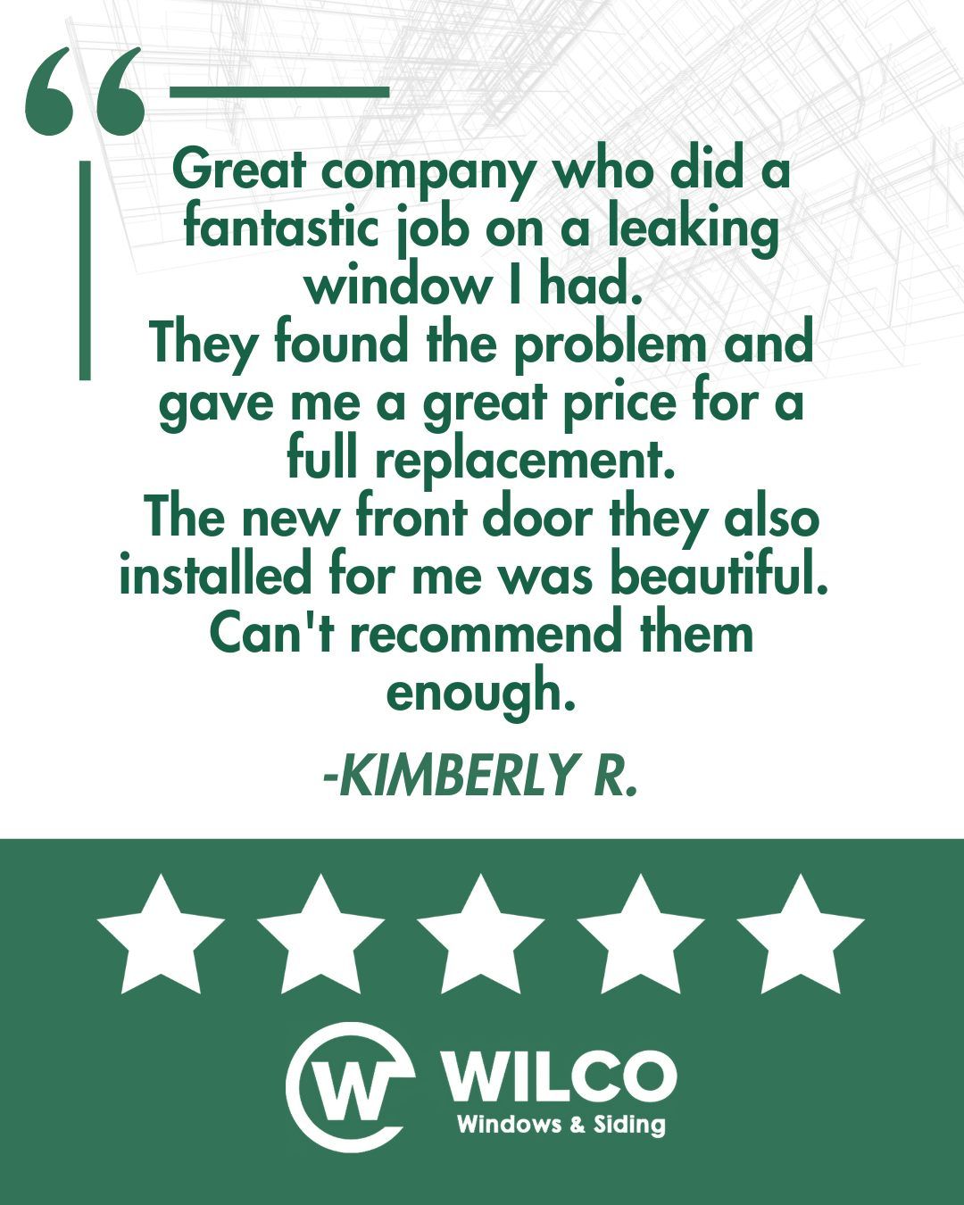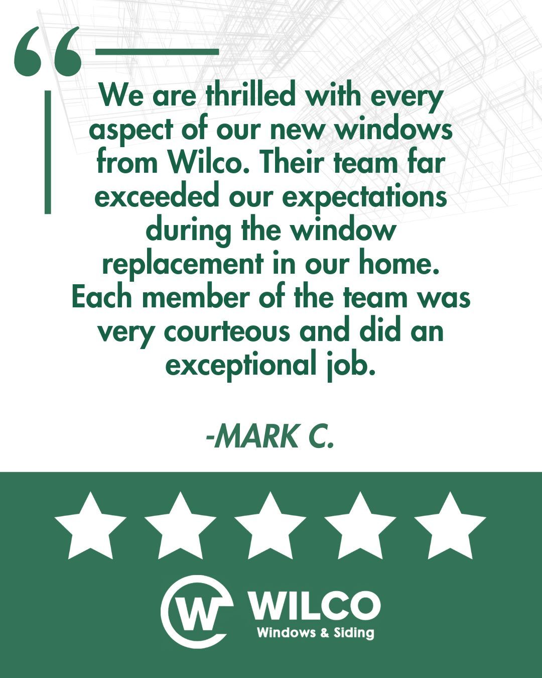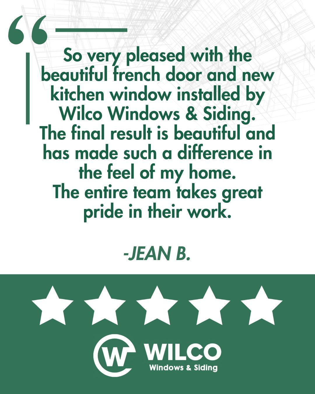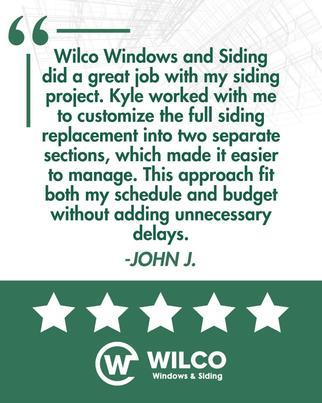 At Wilco Windows & Siding, we take pride in providing exceptional window and siding services to our customers. We would be grateful if you could share your thoughts about our business with others. Your feedback helps us improve and helps others make informed decisions. Please take a moment to leave a review of Wilco Windows & Siding and let others know what you think.